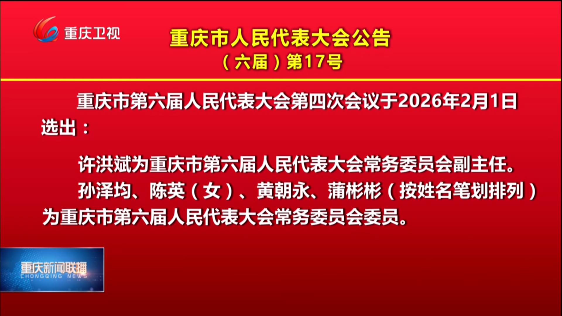 重庆市人民代表大会公告(六届)第17号