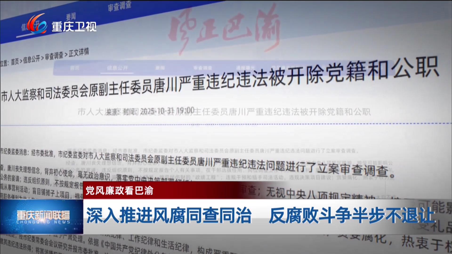 【党风廉政看巴渝】深入推进风腐同查同治 反腐败斗争半步不退让